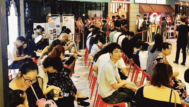 首店开业第一年就迅速走红,第二年直接实现盈利。到2017年时,上上谦已开到第五家门店,据说每天流水稳定在150万,年营业额在5.4亿左右。巅峰时刻,据媒体报道,上上谦门店曾达到28家,其中直营8家,加盟20家。