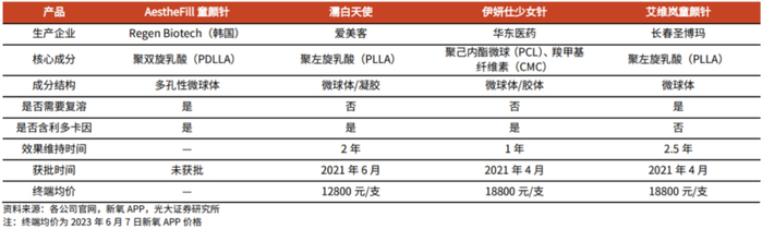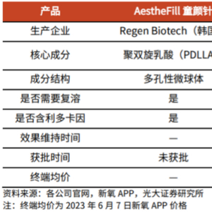 海外再生产品的表现可以印证这一难点。据华安证券发布的研报显示,海外童颜针产品市场成熟,相关产品已使用超20年,积累了较多的临床数据和消费者口碑,三大主流童颜针产品包括Sculptra(法国塑然雅)、AestheFill(韩国爱塑美)、DermaVeil(美国得美颜)。