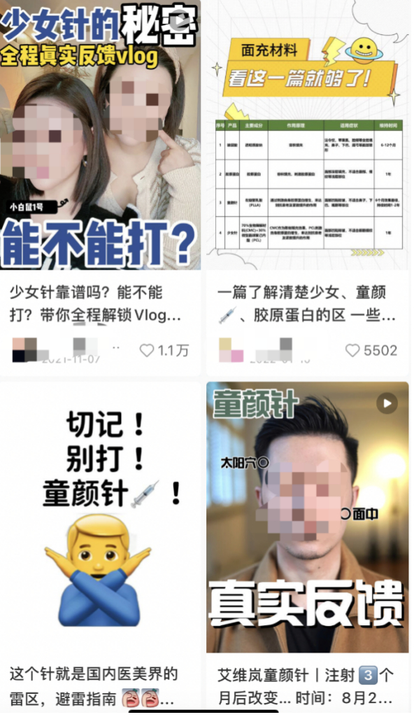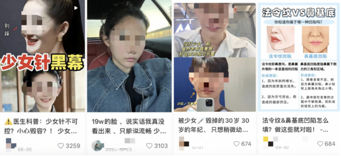 跃入首页的评价褒贬各半,有整形机构与个人博主分享科普打针心得,也有用户发帖吐槽“医生科普:少女针不可控?小心毁容!”“被少女针毁掉的30岁”。