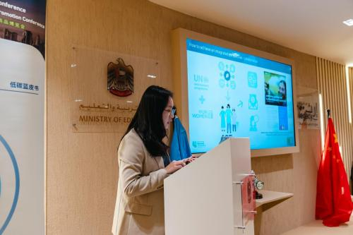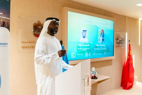 阿布扎比政府的杰出法律研究员Adel Qsaboob特别强调了气候变化、环境保护和绿色教育的重要性,并鼓励青少年和绿色创业者积极应对气候变化的挑战。同时他还强调了合作共创的重要性。