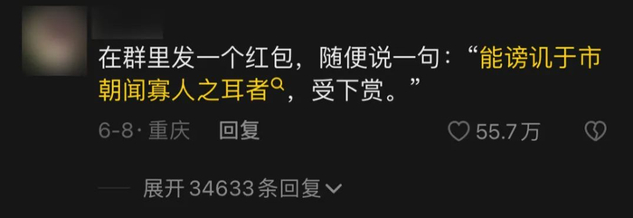 重庆人不假思索用《邹忌讽齐王纳谏》接招:“宿舍群发个红包,随便说一句:能谤讥于市朝,闻寡人之而者,受下赏。”