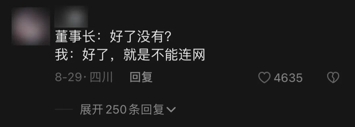 疑惑“董事长电脑连不上网,问了一圈只有你会修,你去董事长办公室修了五分钟,董事长皱着眉头不耐烦地说,好了没有?”
