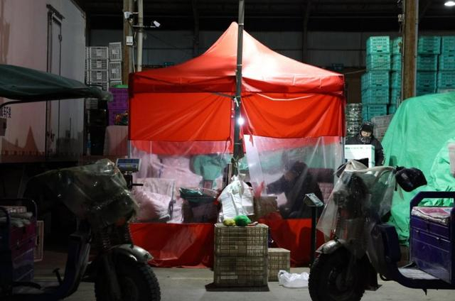 凌晨0点半,保安小李正在匡山农产品综合交易市场门口执勤。“进入十二月份就改成凌晨两点开市了,晚一点大家可以多休息一会再来,菜也不会冻太久。”小李说。受到极寒天气影响,山东匡山农产品综合交易市场延迟了开市时间,这一方面能确保菜品的露天时间缩短,能让菜品减少防冻,又符合顾客的作息时间。