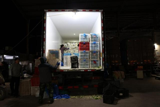 12月19日凌晨,济南市气温再次跌破零下10摄氏度。凌晨两点,寒风吹袭之下,大多数街道显得十分冷清。但济南市槐荫区济齐路上,不少运送蔬菜、生鲜的卡车正不停地奔赴萧瑟冬夜中灯火明亮的地方:山东匡山农产品综合交易市场。