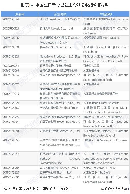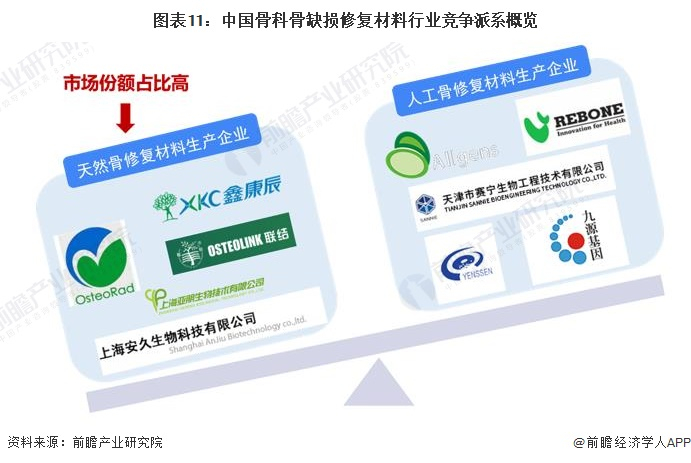 当前我国骨科骨缺损修复材料行业呈现天然骨修复材料生产企业、人工骨修复材料生产企业两大派系并存,外资企业垄断、本土企业快速发展的格局。