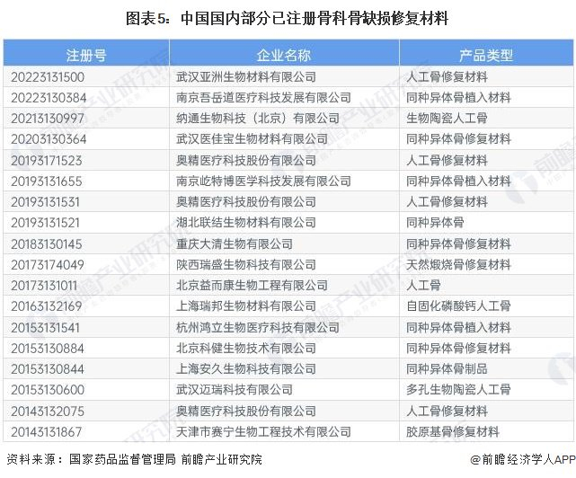 本文核心数据:中国骨科骨缺损修复材料市场规模;中国骨科骨缺损修复材料产品注册数量