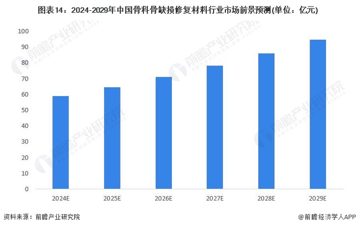目前,全球骨科骨缺损修复材料行业都处于稳定发展阶段,而中国作为后发力市场,具备高于全球平均水平的增长速度。前瞻预计,2023-2028年,我国骨科骨缺损修复材料行业将处于发展提升阶段,预计到2029年市场规模将超90亿元。