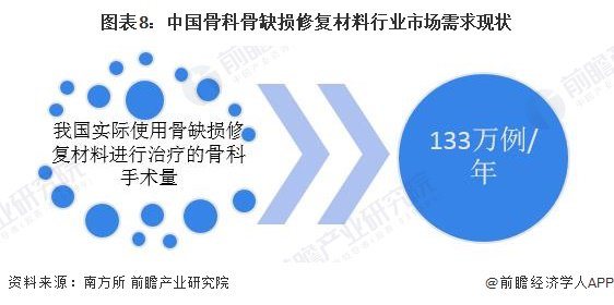 根据南方所的统计数据,在我国每年因交通事故和生产安全事故所致创伤骨折、脊柱退行性疾病及骨肿瘤、骨结核等骨科疾病造成骨缺损或功能障碍的患者超过600万人。目前这些数据反映出我国对于骨科骨缺损修复材料的需求量巨大,市场有较大发展空间。然而,我国实际使用骨缺损修复材料进行治疗的骨科手术仅约为133万例/年。