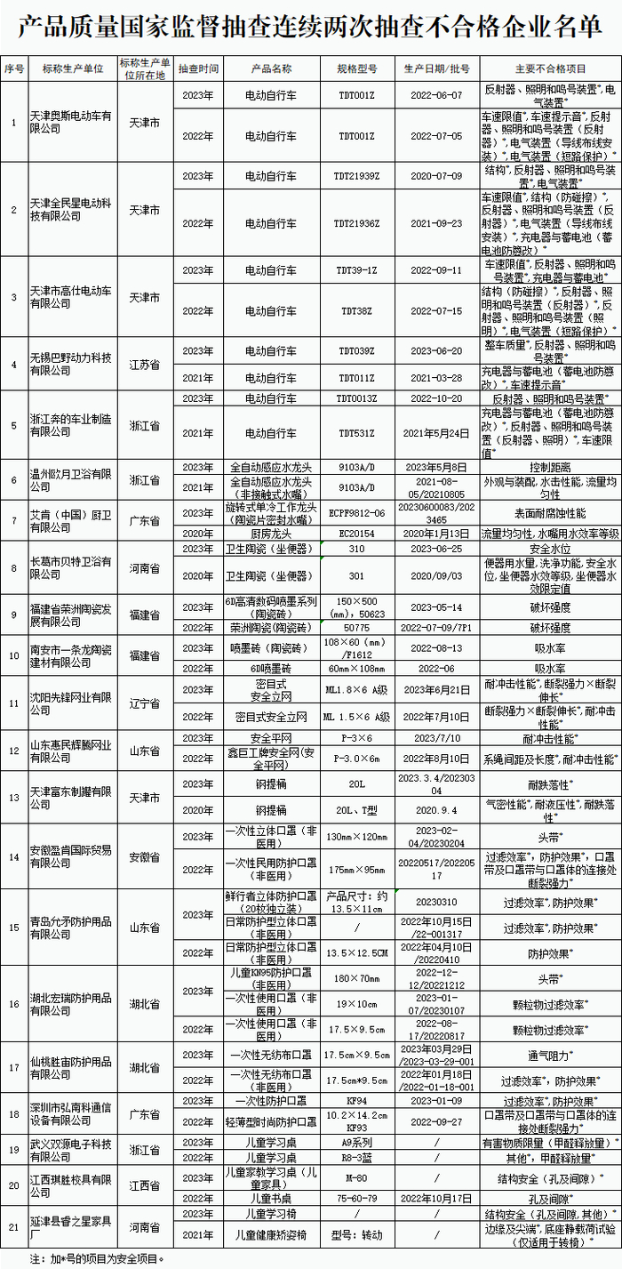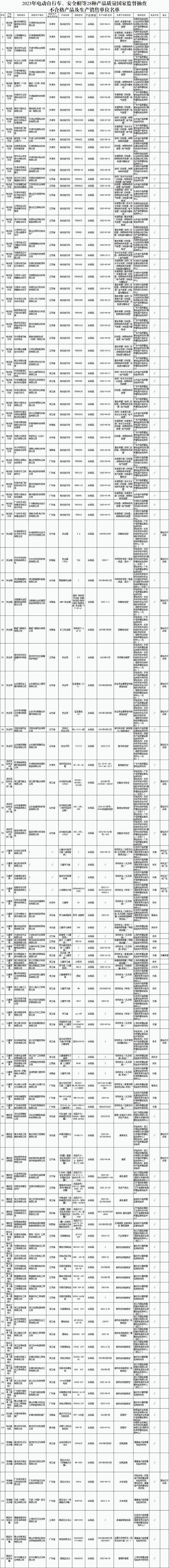 不合格名单公布!电动自行车等28种产品质量抽查情况→