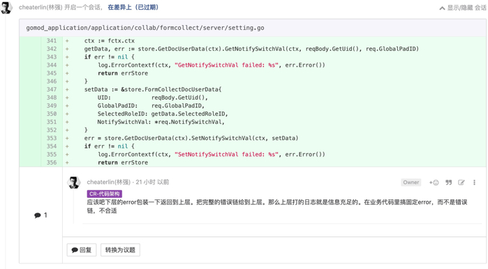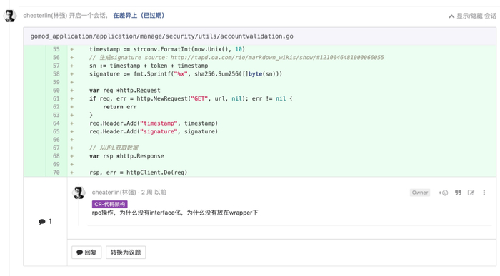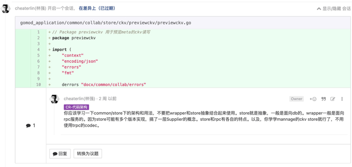 或者,其他能被命名到某种有价值的类型的封装,你要能说出为什么你的封装是必要的,有价值的。必要的时候,你必须要封装。比如,当你的 Golang 函数达到了 80 行,你就应该对逻辑分组,或者把一块过于细节化却功能单一的较长的代码独立到一个函数。同时,你又不能胡乱封装,或者过度封装。是否过度,取决于大家的共识,要 reviwer 能认可你这个封装是有价值的。当然,你也会成为 reviewer,别人也需要获得你的认可。缺乏意图设计的封装,是破坏性的。这会使其他人在面对这段代码时,畏首畏尾,不敢修改它。形成一个腐烂的肉块,并且,这种腐烂会逐渐蔓延开来。