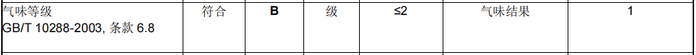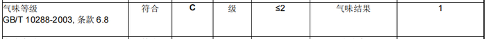 气味等级为1,高于技术要求。