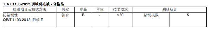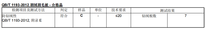 经检测,面料符合防钻绒性要求。