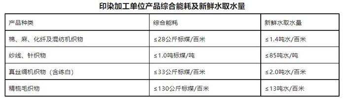 印染企业单位产品综合能耗和新鲜水取水量要达到规定要求。企业水重复利用率应达45%以上。