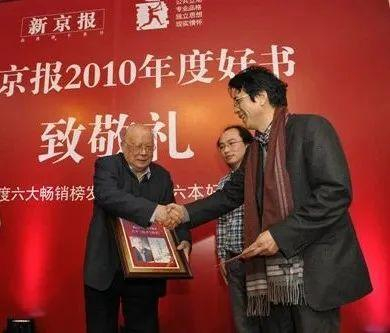 江平(左)在新京报2010年度好书致敬礼活动现场。