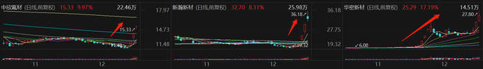 财联社12月20日讯(编辑 若宇)PEEK材料概念股表现强势,DFBP产品为PEEK材料上游主要原材料的中欣氟材收盘3连板,DFBP绝大部分应用于PEEK聚合的新瀚新材本周累涨超72%,公司特种工程塑料项目主要产出PEEK等中高端特种改性工程塑料的华密新材三天累涨超89%。拉长时间看,华密新材自11月17日迄今股价累计最大涨幅近3.2倍。
