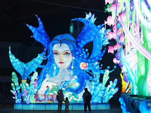 在这里,《山海经》里的各种异兽、神鸟的形象栩栩如生,仿佛穿越时空,重现眼前。5大主题区域,巧妙地将古代神话传说与传统花灯艺术相结合,引领大家进入一个神秘而壮丽的奇幻世界;30组璀璨花灯,为夜晚注入了一抹夺目的绚丽色彩;22座山海神兽威武霸气,为大家带来福瑞八方的祝福;10米鲛人神女,星眸微转,眼神流转间仿佛蕴含着无尽的智慧。整个花灯节不仅精心雕琢了细节,而且充满创意与惊喜。无论是神秘的山海神兽,还是梦幻的海底世界,每一个主题区域都带来了独特的体验。
