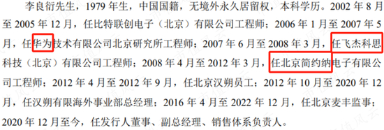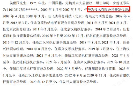 汉朔科技创始人侯世国,硕士毕业后曾在华为任开发代表7年,后分别任职于飞杰科思和简约纳。