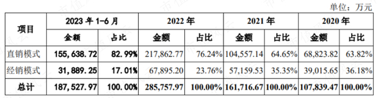 公司对大客户采取直销,因此直销模式占比较高,2023年上半年达到83%。