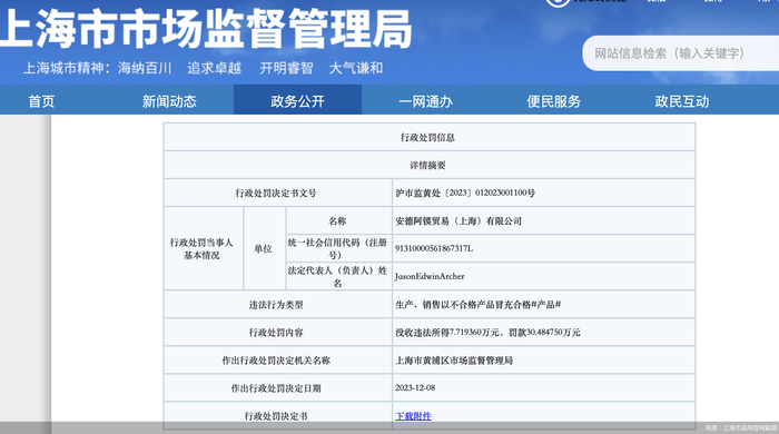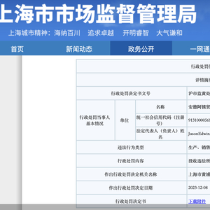 根据天眼查信息,安德阿镆贸易(上海)有限公司有7条历史处罚信息,其中多条因产品质量不合格而被相关部门处罚。