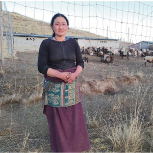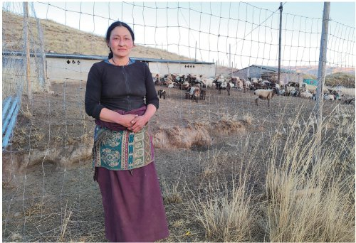 甘南高原的冬牧场上,牧民多瑞和她的羊群。