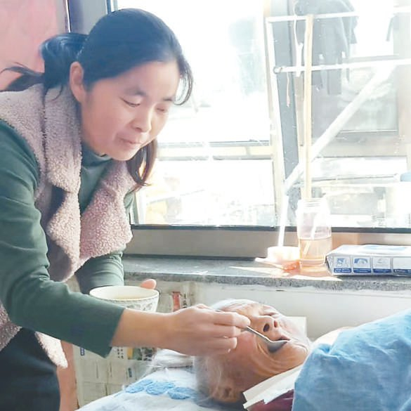 奶奶卧床只能吃流食,王玉静一日三餐,变着花样给奶奶做爱吃的米粥,搭配不同的蔬菜、肉类,再一口一口地喂给奶奶;伤在腰椎,奶奶下不了床,大小便都只能在床上,夜里,王玉静一直睡在奶奶身边,每过个把小时就喊奶奶解手,为了随时起床伺候,王玉静常常和衣而卧。