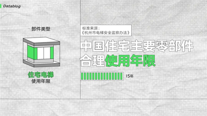 最脆弱的是电梯。虽然国家暂时没有统一的规定,但像杭州,规定电梯合理“打工”年限也就 15 年,用到后面就容易出现各种故障和意外。