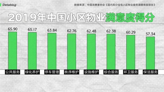 物业们冤吗?看业主满不满意就知道了。2019 年消费者协会调查显示,业主们对物业的服务满意度刚及格,最基础的保洁服务甚至还不及格。
