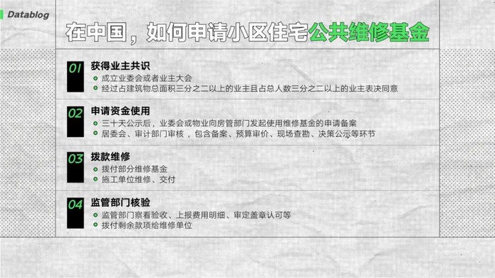 有部分“幸运儿”可以等来政府的改造工程,但大多数住宅只能指望小区的公共维修基金——买房时我们要一次性缴纳购房款的 2%-3%,将来用于修补破损或漏水的墙壁外立面、改造或重装电梯等公共设施。
