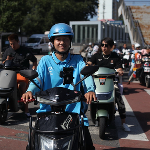 刘一飞去年8月来到北京,成为无声骑手的一员。