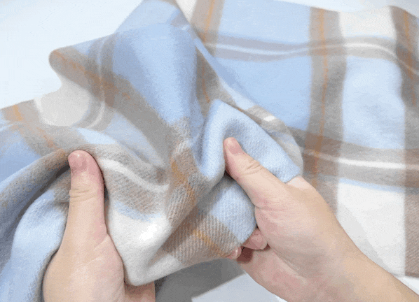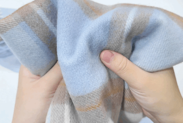 所以,这款围巾挺阔有形,不易褶皱。即使压褶了,垂挂2小时后,自然恢复柔顺。它能做到“柔软不刺肤,保暖更有形”。