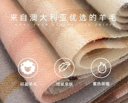 它就是轻梵澳毛格子系列绵羊毛围巾,19色,男女通用,超保暖。