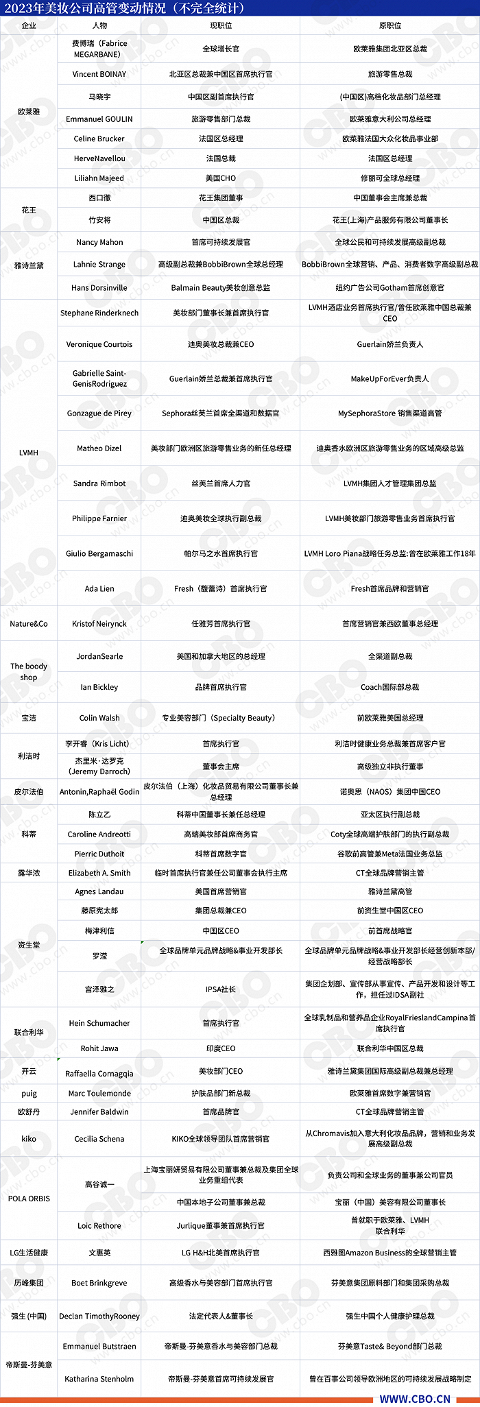 2023年,全球化妆品市场的重大人事变动仍在持续发生。