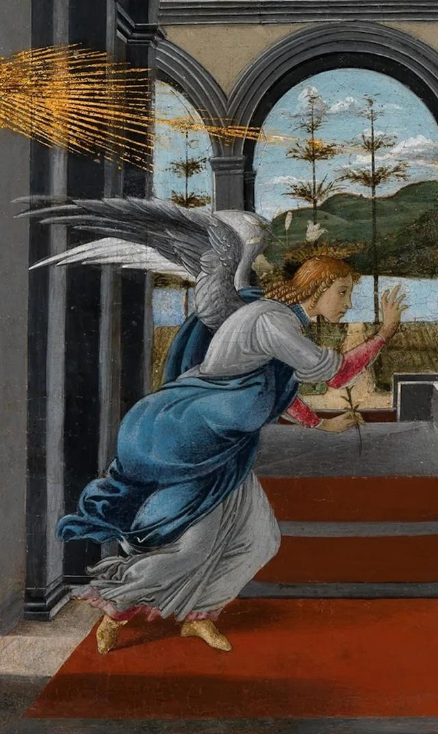 波提切利,《天使报喜》(细节),约1485–1493年,格拉斯哥凯文葛罗夫博物馆藏