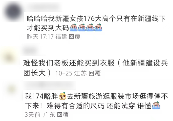 但具象现实总戳破狭隘想象。真正去过新疆的人便知道:大码之于新疆,才是常态。