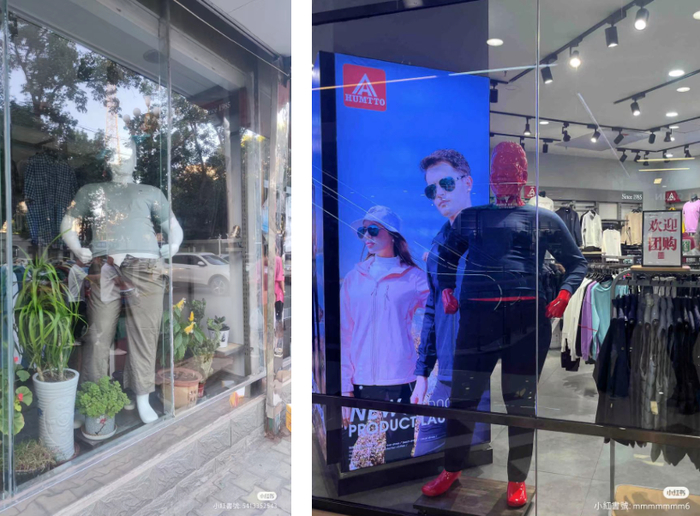 连锁商超、品牌店面自然都还维持着统一标准,但在街边巷尾、更贴近当地人民群众生活的服装店中,胖哥哥胖姐姐模特正普遍诉说着一种真实。