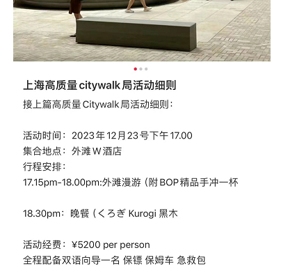 最近,在小红书上一位博主计划组织一场“上海高净值 Citywalk 局”,打算叫一堆有钱人散步,探索外滩的繁华。