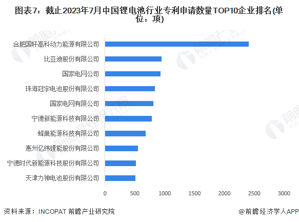 其中,合肥国轩高科动力能源有限公司锂电池相关专利申请数量最多,2404项。比亚迪股份有限公司专利申请量排名第二,锂电池相关专利申请数量超过940项。