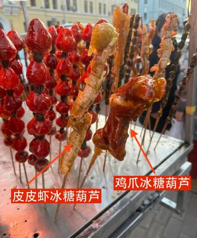 鸡爪、青椒、猪蹄、皮皮虾、螃蟹、辣条冰糖葫芦也纷纷登场。