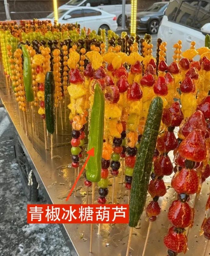 今年冬天冰糖葫芦更是多次上热搜,不但出现1米7长的巨型冰糖葫芦: