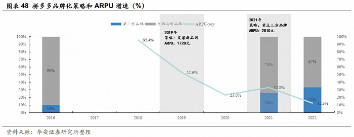 华安证券在2022年发布过一组观测数据,拼多多上白牌和新品牌商家GMV 占比高达67%。SKU足够丰富的白牌,成为拼多多的核心竞争力之一。
