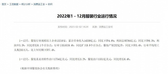这是由生产模式决定的。在传统的生产链条中,品牌商永远会拿走利润的大头,即使到现在也是如此。以耐克为例,2022财年,净利率高达12.8%,毛利率更是高达46%。而中国服装协会的数据显示,2022年,服装行业规模以上企业利润率仅为5.3%。