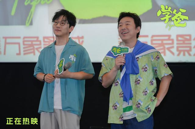 《学爸》导演苏亮和影片的主演、监制黄渤在与观众互动。