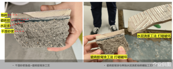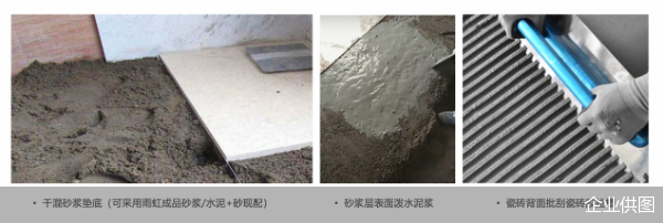 施工便利:几乎不改变原有的施工习惯,只需将素水泥膏替换为瓷砖胶+泼水泥浆,瓦工师傅可以快速上手。