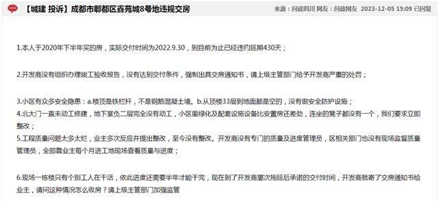 针对项目交付存在的众多问题,鑫苑城不少业主选择在问政四川平台上投诉。