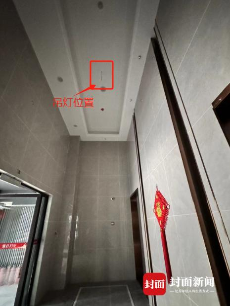 进入小区后,记者查看了4个单元楼栋,发现均未安装入户吊灯,屋顶只见一根孤零零的电线。