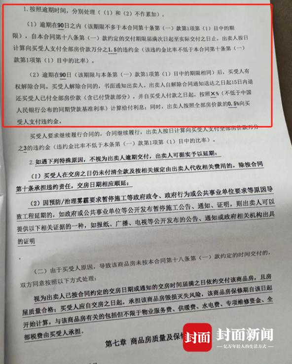 按照业主提供的购房合同,其中对延期交付和货不对板都做出了明确约定。如交付时该房屋装修装饰达不到约定标准,出卖人应在双方确认之日起30日内采取补救措施纠正。如逾期仍未达到标准可进行赔付;逾期超过90日,买受人有权选择解除合同,退房。