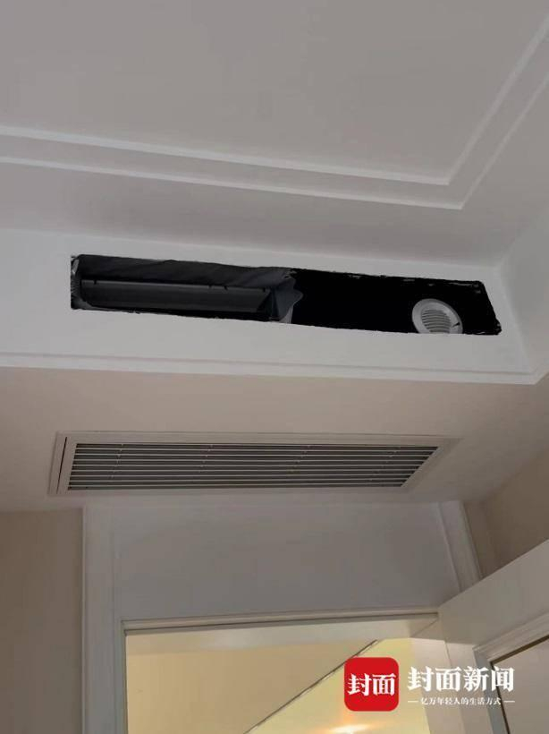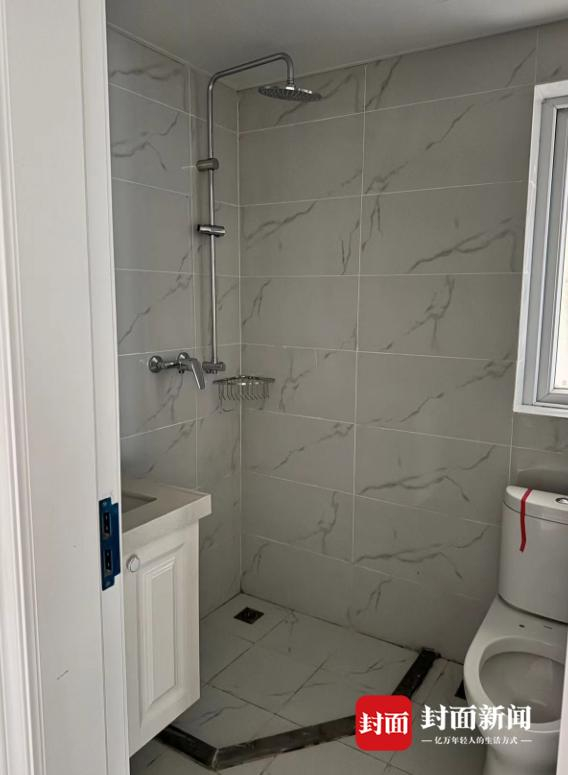 走入多名业主家中,问题更加“离谱”。一户业主家中卫生间淋浴房没有隔断玻璃门,马桶缺失马桶盖,甚至连水管都没有。屋内抽油烟机、插座面板也“消失”了。