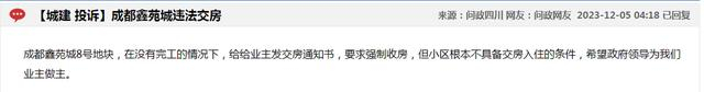 鑫苑城“预交付”质量堪忧引业主投诉 官方回复:不能强制业主收房