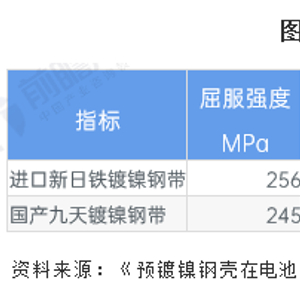 本文核心数据:九天与新日铁预镀镍钢带力学性能对比;九天与新日铁镀镍钢带合金层检测结果对比;东方电热预镀镍产品现有客户情况