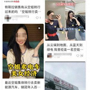 一张仪态极佳、气质优雅的空乘工作照,一张笑容满面穿着车企新工服的证件照,配以“从空乘转型新能源卖车”的自述文案,近日,大量“空姐转行入职新能源汽车公司做销售”的分享热帖出现在社交媒体平台,引发关注。随即,“多方回应大批空姐转行卖车”话题冲上热搜。